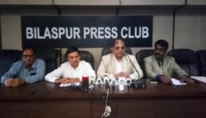 गुरुवार को बिलासपुर प्रेस क्लब में पत्रकारों से चर्चा करते हुए