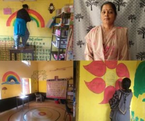मैने जब अपने सेक्टर में आंगनबाड़ियों को देखा तो मुझे ख्याल आया की बच्चों को भी अपने बचपन में ऐसे की रोचक चीजों से जोड़ा जाये ताकि उनकी बचपन की यादें रंगीन एवं अच्छी हो। मैने इस अभियान के तहत अपने सेक्टर की सभी 13 आंगनबाड़ियों में पेंटिग का कार्य प्रारंभ कराया और इनमें तितली, खरगोश-कछुआ की कहानी, रंगो की पहचान, इंद्रधनुष, जोड़ी बनाओ, फलों, सामग्री, आकृति, नदी, तोता, बादल, वर्षा इत्यादि बनवाये ताकि बच्चों को इससे ज्ञान मिले एवं उनका मन आंगनबाड़ी केन्द्रों में लगा रहे, जिससे वे स्वयं आंगनबाड़ी आना चाहे। स्वच्छ आंगनबाड़ी अभियान ने मुझे एक नया मोड़ दिया जिसमे मैं अपनी पसंद की पेंटिग को आंगनबाड़ी में करू और अच्छे से बच्चों को इससे सिखाऊं।