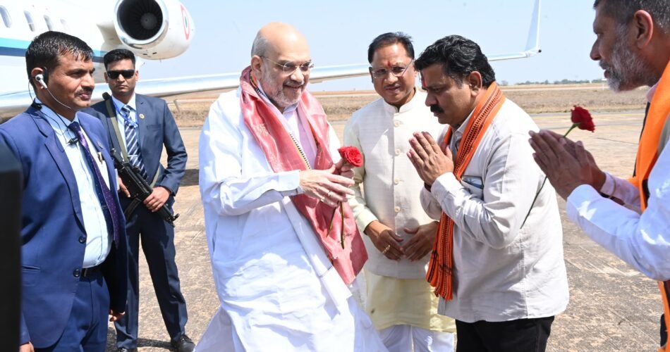 रायपुर। केंद्रीय गृह मंत्री अमित शाह का राजधानी रायपुर के स्वामी विवेकानंद विमानतल में मुख्यमंत्री विष्णुदेव साय ने आत्मीय स्वागत किया। इस अवसर पर छत्तीसगढ़ के गृहमंत्री विजय शर्मा ने भी केंद्रीय गृहमंत्री का स्वागत किया। बता दें कि गृहमंत्री अमित शाह रायपुर से कोंडागांव के लिए रवाना कोंडागांव के लिए रवाना होंगे। जहां वे बस्तर क्लस्टर बैठक लेंगे।