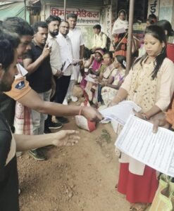 शनिवार को बलरामपुर जिले के कुसमी बाजार में जाकर ग्रामीणों को मोदी की (जुमला) गारंटीयो की दी जानकारी , बांटे पर्चे