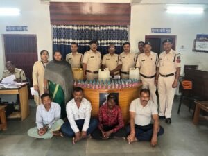 रतनपुर | पुलिस अधीक्षक बिलासपुर रजनेश सिंह के द्वारा जिले में नशे के कारोबार पर अंकुश लगाने हेतु निदेर्शित किया गया है जिसके परिपालन में अतिरिक्त पुलिस अधीक्षक (ग्रामीण) अर्चना झा एवं अनुविभागीय अधिकारी (पुलिस) कोटा सिद्धार्थ बघेल के मार्गदर्शन में नवनियुक्त थाना(आई पी एस) प्रभारी प्रशि. अजय कुमार के नेतृत्व में टीम गठित कर अवैध शराब बिक्री करने वाले कोचियों के विरूद्ध रेड कार्यवाही करने हेतु मुखबिर तैनात किया गया था। जो दिनाँक 07/03/2024 को मुखबिर सूचना पर थाना रतनपुर क्षेत्र के अलग -अलग स्थानों पर रतनपुर पुलिस टीम द्वारा रेड कार्यवाही कर,ग्राम जाली की रहने वाली संतोषी नेताम के घर के बाड़ी से 07 लीटर कच्ची महुआ शराब कीमती 1050 रूपये, ग्राम रानीगाँव निवासी रोशन डगर्जी के कब्जे से 44 नग देशी प्लेन शराब कुल 7.920 लीटर कीमती 3520 रूपये,ग्राम कडरी के अर्जून खैरवार के घर बाड़ी से 08 लीटर कच्ची महुआ शराब कीमती 1200 रूपये,ग्राम बेलपारा बेलतरा निवासी संतोष नेताम के घर के आँगन से 10 लीटर कच्ची महुआ शराब कीमती 1500 रूपये, छोटू ढाबा अंधियारीपारा के संचालक राजेन्द्र कश्यप के ढाबा से 50 नग देशी प्लेन शराब कुल 09 लीटर 4000 रूपये को उक्त व्यक्तियों से बरामद कर उक्त शराब को जप्त कर आरोपियों के विरूद्ध धारा 34(2) आबकारी एक्ट के तहत कार्यवाही कर आरोपियों को गिरफ्तार कर न्यायिक रिमाण्ड पर भेजा गया।