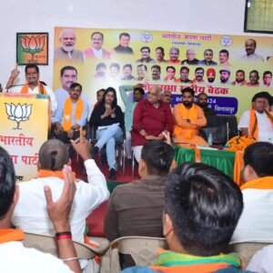भाजपा के स्थापना दिवस पर कार्यालय में फहराया झण्डा,सजाए झालर, बटी मिठाईयां