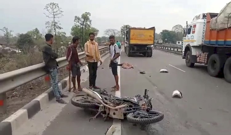 पूरी घटना कटघोरादृ बिलासपुर नेशनल हाइवे की है। जहां पाली थाना इलाके के डूमरकछार गांव में एक तेज रफ्तार ट्रक ने बाईक सवार पिता पुत्र को ठोकर मार दी। ठोकर इतनी जबरदस्त थी कि घटनास्थल पर ही पिता ने दम तोड़ दिया। वहीं 10 साल के मासुम पुत्र घटना में गंभीर रूप से घायल हो गया। जिसकी हालत नाजूक बताई जा रही है। घटना के बाद घायल मासुम को एम्बुलेंस के जरिये अस्पताल पहुंचाया गया।
