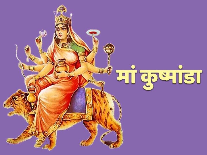 नवरात्रि के चौथे दिन की अधिष्ठात्री देवी मां कूष्मांडा हैं. माता का स्वरूप बड़ा अद्भुत और विलक्षण है. इनकी आठ भुजाएं हैं, जिनमें इन्होंने कमण्डल, धनुष–बाण, कमल, अमृत कलश, चक्र और गदा धारण कर रखे हैं. इन अष्टभुजा माता के आठवें हाथ में सिद्धियों और निधियों की जप माला है. इनकी सवारी सिंह है. ये स्रुष्टि का निर्माण करनेवाली देवी हैं. जब किसी भी वस्तु का अस्तित्व नही था तब कूष्मांडा देवी ने अपनी हंसी से इस सृष्टि का निर्माण किया था.