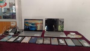 बलौदाबाजार:- भाटापारा शहर पुलिस द्वारा आनलाईन क्रिकेट सट्टा का संचालन करने वाले 03 आरोपियों गिरफ्तार को गिरफ्तार किया गया। आरोपियों द्वारा आईपीएल क्रिकेट मैचों पर रूपये पैसों का दाँव लगाकर सट्टा खिलाया जा रहा था। आरोपियों को टेऊराम कॉलोनी आदर्श नगर खुले मैदान पर सट्टा-पट्टी लिखते हुए रंगे हाथों किया गया गिरफ्तार। आरोपियों से 02 नग लैपटॉप, 12 नग एण्ड्रायड मोबाइल एवं नगदी रकम ₹1410 जप्त किया गया, इसके साथ ही आरोपियों से नगदी सहित कुल ₹1,51,410 कीमत मूल्य का मोबाइल, लैपटॉप बरामद किया गया। “अभियान सृजन” के तहत वरिष्ठ पुलिस अधीक्षक सदानंद कुमार, अतिरिक्त पुलिस अधीक्षक बलौदाबाजार अविनाश ठाकुर, एसडीओपी भाटापारा आशीष अरोरा के मार्गदर्शन में एवं थाना प्रभारी भाटापारा शहर निरीक्षक योगिताबाली खापर्डे के निर्देशन में थाना भाटापारा शहर पुलिस द्वारा क्षेत्र अंतर्गत शराब कोचियों, शांति भंग करने वाले असामाजिक तत्वों, सटोरियों एवं अन्य अवैधानिक कार्य करने वाले लोगों के विरुद्ध कार्यवाही लगातार जारी है। इसी क्रम में थाना भाटापारा शहर एवं साइबर सेल की संयुक्त पुलिस टीम द्वारा भाटापारा के टेऊराम कॉलोनी आदर्श नगर के खुले मैदान में यह कार्रवाई की गई।आरोपियों के विरुद्ध थाना भाटापारा शहर में अपराध क्र. 235/2024 छत्तीसगढ़ जुआ प्रतिशेध अधिनियम की धारा 07 के तहत अपराध पंजीबद्घ कर आरोपियों विधिवत गिरफ्तार कर माननीय न्यायालय के समक्ष प्रस्तुत करते हुए जेल भेजने की प्रक्रिया की जा रही है। आरोपियों को गिरफ्तार करने में साइबर सेल से प्रभारी उपनिरीक्षक प्रियेश जॉन, प्रधान आरक्षक भारत भूषण पठारी, आरक्षक अजय यादव, अरविंद कौशिक, अभिनव चौबे, यशवंत यादव, सूरज राजपूत, थाना भाटापारा शहर प्रभारी निरीक्षक योगिताबाली खापर्डे, सहायक उपनिरीक्षक घनश्याम वर्मा, प्रधान आरक्षक भूखन वर्मा, आरक्षक अरविंद, उमेश वर्मा, विजय शंकर ठाकुर, दुर्गेश साहू, लोरिक शांडिल्य आदि का सराहनीय योगदान रहा।