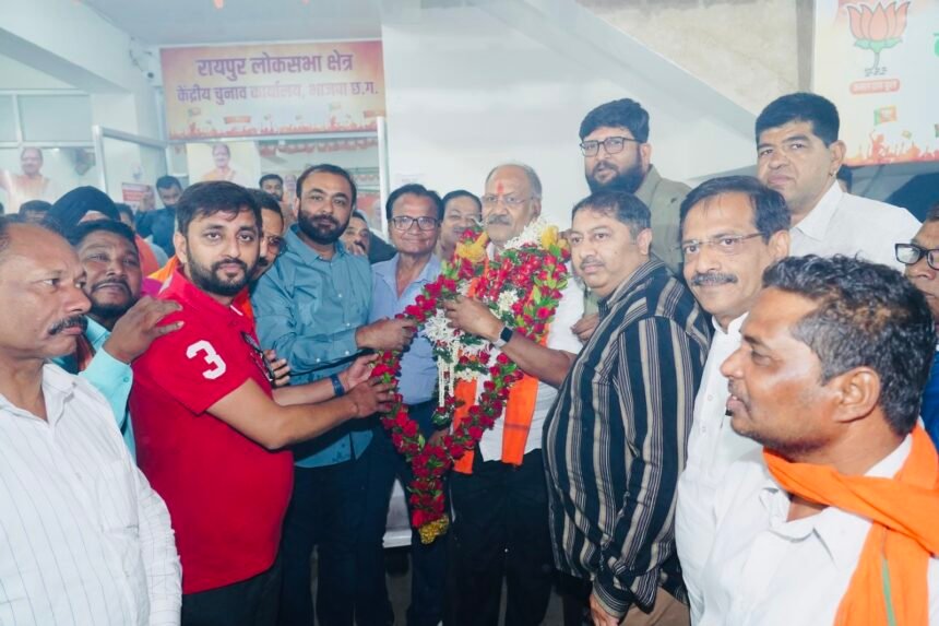 लोकसभा प्रत्याशी बृजमोहन अग्रवाल को कार्यकर्ताओ ने अग्रीम जीत की दी बधाई रायपुर में जश्न का माहौल, जमकर हुई आतिशबाजी