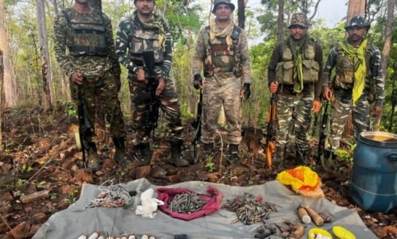 बाद घटना स्थल की सर्चिंग करने पर नक्सलियों द्वारा छिपाकर कर रखे गए भारी मात्रा आर्म्स, एम्युनेशन, गोला-बारूद व अन्य नक्सली सामाग्रियों को डम्प स्थल से बरामद किया गया। बाद सभी पार्टी गस्त सर्चिंग करते हुए सुरक्षित कैम्प वापस आये।