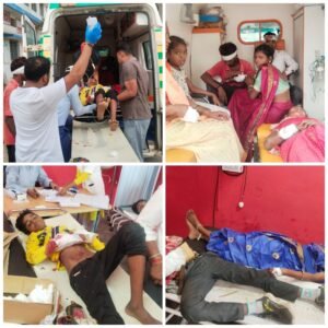 रतनपुर रानी बैछाली के पास सड़क हादसे में लगभग दो दर्जन लोग हुए घायल