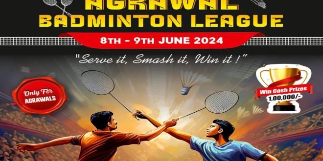 रायपुर। अग्रवाल सभा रायपुर की युवा ईकाई ‘अग्रवाल युवा मंडल’ द्वारा समाज के युवाओं को प्रोत्साहित करने और उनकी प्रतिभा बढ़ावा देने ‘अग्रवाल बैंडमिंटन लीग’ का आयोजन कराया जा रहा है. इस लीग का आयोजन 8 और 9 जून को “आईस्पोर्ट बैडमिंटन एरिना” में किया जाएगा.