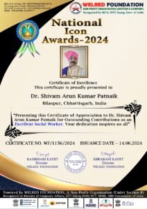वर्ल्ड फाउंडेशन के डायरेक्टर शरबानी कायेत ने अपनी प्रमाण मे कहा कि हमे घोषणा करते हुए खुशी हो रही है कि डॉक्टर शिवम अरुण पटनायक नेशनल आइकन अवार्ड 2024 से सम्मानित किया गया है। यह प्रतिष्ठित पुरस्कार उनके उत्कृष्ट योगदान की पुष्टि करता है और एक उत्कृष्ट सामाजिक कार्यकर्ता के रूप में आपकी उपलब्धियों पर प्रकाश डालता है। हर किसी के लिए ऐसी प्रेरणा बनेंगे।