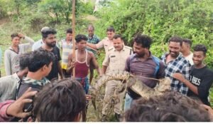 खूंटा घाट से भटककर कर्रा पहुंचे मगरमच्छ को किया गया रेस्क्यू