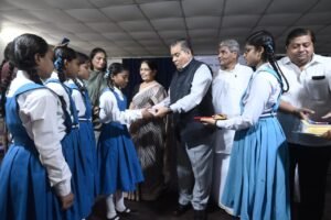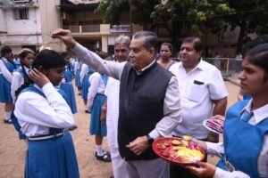 रायपुर|लक्ष्मी नारायण कन्या उच्चतर माध्यमिक शाला रायपुर में शाला प्रवेश उत्सव का कार्यक्रम गुरुकुल हॉल में किया गया ।कार्यक्रम के मुख्य अतिथि के रुप में छत्तीसगढ़ लोक आयोग के प्रमुख लोकायुक्त माननीय श्री टी.पी. शर्मा जी उपस्थित हुए ।कार्यक्रम की अध्यक्षता भातखंडे ललित कला शिक्षक समिति के अध्यक्ष माननीय श्री तरल मोदी जी ने किया मुख्य अतिथि श्री टी.पी. शर्मा जी ने नवप्रवेशित छात्राओं को कॉपी, पेन, पुस्तक एवं मिष्ठान भेट कर स्वागत सत्कार किया ।