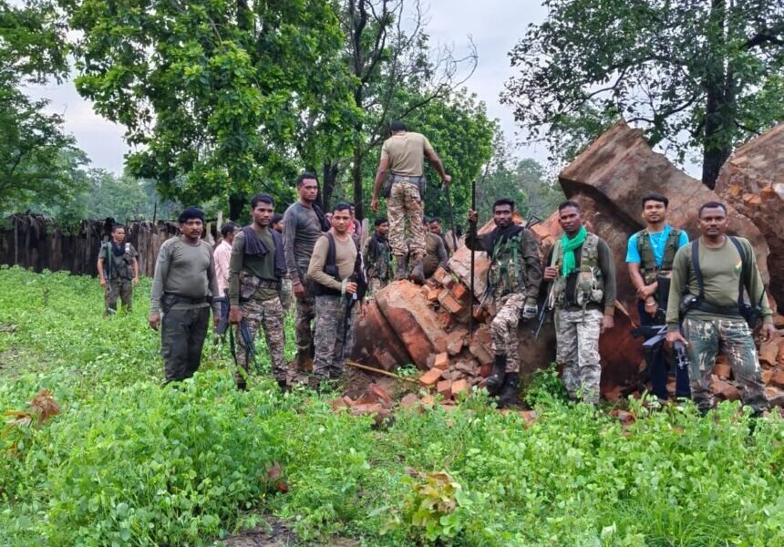 CG NEWS: जंगलों में बने नक्सली स्मारक को पुलिस टीम ने किया ध्वस्त