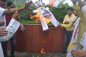 शहर ज़िला कांग्रेस कमेटी के अंतर्गत ब्लॉक 01 और ब्लॉक 03 के द्वारा पूर्व केंद्रीय मंत्री और भाजपा सांसद अनुराग ठाकुर का पुतला दहन किया गया।
