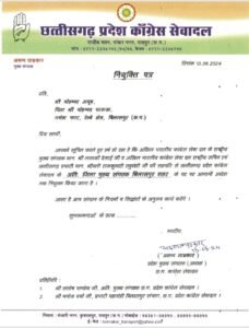 मोहम्मद अयूब अतिरिक्त जिला मुख्य संगठक बिलासपुर शहर कांग्रेस सेवा दल मे नियुक्त