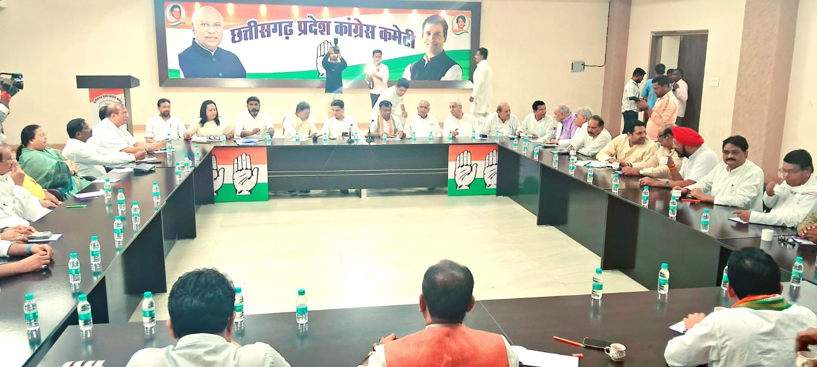 बैठक में प्रदेश कांग्रेस अध्यक्ष दीपक बैज, नेता प्रतिपक्ष डॉ. चरणदास महंत, पूर्व मुख्यमंत्री भूपेश बघेल, पूर्व उपमुख्यमंत्री टी.एस. सिंहदेव, एआईसीसी सचिव एवं छत्तीसगढ़ प्रभारी एस.ए. सम्पत कुमार, एआईसीसी सचिव एवं छत्तीसगढ़ प्रभारी जरिता लैतफलांग, एआईसीसी संयुक्त सचिव एवं छत्तीसगढ़ प्रभारी विजय जांगिड़, पूर्व मंत्री, रविन्द्र चौबे, डॉ. शिवकुमार डहरिया, मोहन मरकाम, अनिला भेड़िया, जयसिंह अग्रवाल, गुरू रूद्र कुमार, उमेश पटेल, अमरजीत भगत, डॉ. प्रेमसाय सिंह, धनेन्द्र साहू, सत्यनारायण शर्मा, अमितेष शुक्ल, धनेश पाटिला, प्रदेश कांग्रेस प्रभारी महामंत्री मलकीत सिंह गैदू, प्रदेश कांग्रेस संचार विभाग अध्यक्ष सुशील आनंद शुक्ला, पूर्व विधायक विकास उपाध्याय, पूर्व सांसद छाया वर्मा, पूर्व विधायक कुलदीप जुनेजा, महापौर एजाज ढेबर, सभापति प्रमोद दुबे, पूर्व विधायक अरूण वोरा, पूर्व अध्यक्ष खादी ग्रामोद्योग राजेन्द्र तिवारी, पंकज शर्मा, महामंत्री कन्हैया अग्रवाल, दीपक मिश्रा, सकलेन कामदार, सुबोध हरितवाल, रायपुर ग्रामीण जिलाध्यक्ष उधोराम वर्मा, कांग्रेस सेवादल प्रमुख अरूण ताम्रकार, आदिवासी कांग्रेस अध्यक्ष जनक धु्रव, प्रदेश कांग्रेस अनुसूचित जाति विभाग अध्यक्ष राजकुमार अंचल, प्रदेश कांग्रेस पिछड़ा विभाग अध्यक्ष केशव चंद्राकर, प्रदेश कांग्रेस विधि विभाग अध्यक्ष देवा देवांगन, युवा कांग्रेस अध्यक्ष आकाश शर्मा उपस्थित थे।