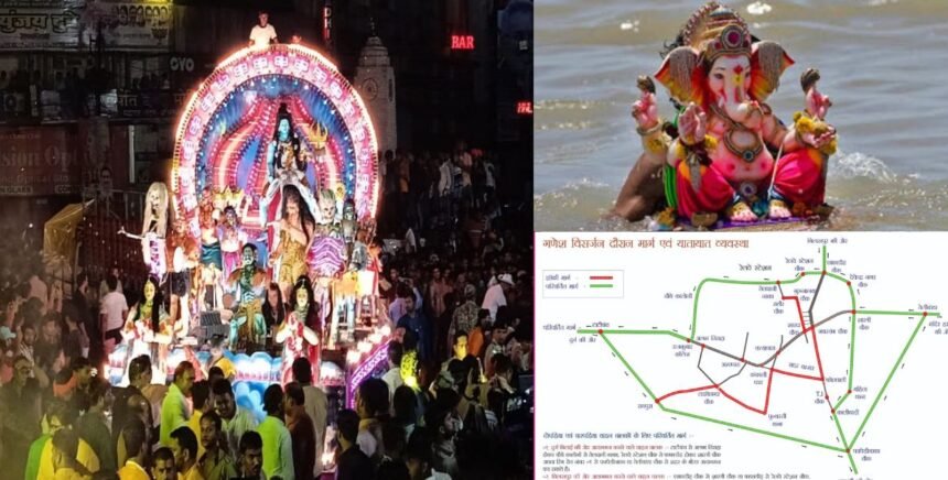 रायपुर: जिले में गणेश झांकी प्रदर्शनी विसर्जन चल समारोह का मुख्य कार्यक्रम दिनांक 19.09.2024 को रात्रि में होना प्रस्तावित है। चल समारोह कार्यक्रम के दौरान आयोजको द्वारा आकर्षक झांकियों के साथ गणेश प्रतिमाओं का विसर्जन  हर्षोल्लास के साथ किया जाता है। चल समारोह को देखने के लिए रायपुर शहर से तथा आस पास के ग्रामीण जन लाखों की संख्या में एकत्रित होते है। दिनांक 19.09.2024 को संध्या से गणेश प्रतिमाओं व झांकियॉं शहर के विभिन्न क्षेत्रों से आकर राठौर चौक में एकत्रित होना प्रारंभ हो जाती है जो नवीन मार्केट/गुरुनानक चौक-शारदा चौक-जयस्तंभ चौक-मालवीय रोड-चिकनी मंदिर-कोतवाली चौक-सदर बाजार-सद्दाणी चौक – सत्तीबाजार-कंकाली तालाब- पुरानी बस्ती थाना के सामने से होकर लाखेनगर चौक- सुन्दरनगर-रायपुरा चौक होकर महादेव घाट, खारून नदी में गणेश प्रतिमाओं का विसर्जन होगा।