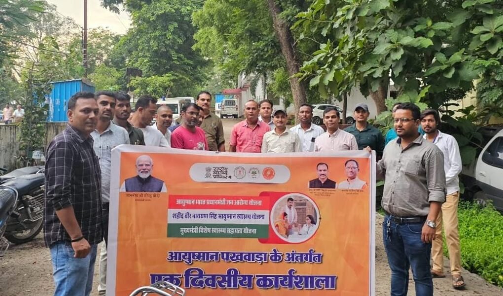 20 से 30 सितम्बर तक चलाए जा रहे आयुष्मान पखवाड़े के तहत विभिन्न गतिविधियों के माध्यम से हितग्राहियों का आयुष्मान कार्ड पंजीयन कराया जा रहा है। इसी क्रम में स्कूली छात्रों का आयुष्मान कार्ड बनाने के लिए निगम शिक्षकों को आयुष्मान योजना के नोडल अधिकारी डॉ. अनिल श्रीवास्तव द्वारा जानकारी दी गई और आयुष्मान कार्ड बनाने के लिए प्रशिक्षित किया गया। संजीवनी अस्पताल के सभागार में आयोजित कार्यशाला में आयुष्मान भारत योजना की जिला स्तरीय टीम द्वारा विभिन्न सत्र के माध्यम से कार्ड बनाने की प्रक्रिया की जानकारी दी गई। पखवाड़े के तहत रैली का आयोजन कर योजना के संबंध में लोगों को जागरूक किया गया।