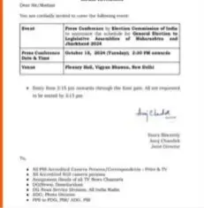 रायपुर। चुनाव आयोग महाराष्ट्र और झारखंड के विधानसभा चुनाव के लिए आज दोपहर बाद तारीखों का ऐलान करने जा रहा है। इसके साथ रायपुर दक्षिण और उत्तर प्रदेश के विधानसभा सीटों के लिए भी चुनाव तिथि की घोषणा की जाएगी।