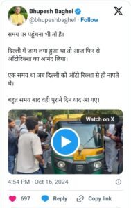 पूर्व सीएम भूपेश बघेल ने आगे लिखा है कि एक समय था जब दिल्ली को ऑटो रिक्शा से ही नापते थे. बहुत समय बाद वही पुराने दिन याद आ गए.