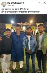 दूसरी ओर BJP ने आरोपी कुलदीप साहू और सीके चौधरी की फोटो को भिलाई विधायक देवेंद्र यादव के साथ ‘X’ पर पोस्ट किया है। इसमें लिखा है – खूब जमेगा रंग जब जेल में बैठेंगे तीन यार, होंगे हर अपराधी जेल में, ज़ीरो टॉलरेंस है ‘विष्णु सरकार’ ।