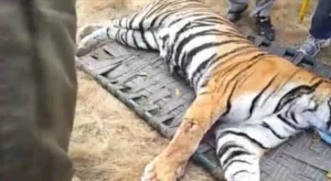 TIGER IN CITY:शहर में घुसा बाघ, वन विभाग ने 10 घंटे की कोशिशें के बाद ट्रेक्युलाइज कर पकड़ा
