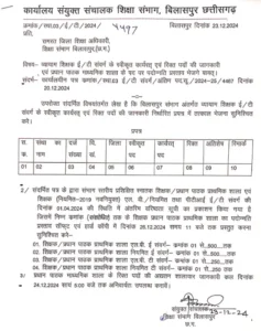 रायपुर। राज्य शिक्षा विभाग के संयुक्त संचालक ने सभी जिला शिक्षा अधिकारियों (DEO) को पत्र जारी कर व्यायाम शिक्षक (ई/टी संवर्ग) के स्वीकृत और रिक्त पदों की जानकारी मांगी है। विभाग ने स्पष्ट निर्देश दिए हैं कि सभी जिलों से यह जानकारी 26 दिसंबर तक अनिवार्य रूप से भेजी जाए।प्रधान पाठक माध्यमिक शाला के लिए प्रस्ताव भी मांगा गया