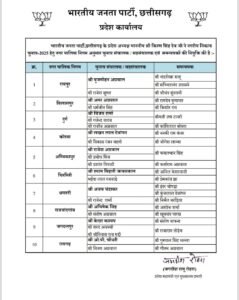 भारतीय जनता पार्टी, छत्तीसगढ़ के प्रदेश अध्यक्ष किरण सिंह देव ने नगरीय निकाय चुनाव-2025 हेतु नगर पालिक निगम अनुसार चुनाव संचालक / सहसंचालक एवं समन्वयकों की नियुक्ति की है.. सूची👇