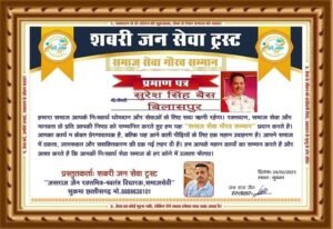 बिलासपुर। नगर के सुरेश सिंह बैस को समाज सेवा के क्षेत्र में उल्लेखनीय कार्य के लिए “समाज सेवा गौरव सम्मान” से सम्मानित किया गया है! उक्त सम्मान बस्तर ( सुकमा ) में कार्यरत शबरी जनसेवा ट्रस्ट द्वारा प्रदत्त किया गया है !