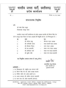 पॉलिटिकल वॉचभाजपा प्रदेश अध्यक्ष ने रायपुर शहर जिला के मंडल अध्यक्षों की नियुक्ति की March 20, 2025Kamlesh LavahtreShare thisभाजपा प्रदेश अध्यक्ष ने रायपुर शहर जिला के मंडल अध्यक्षों की नियुक्ति की रायपुर।भारतीय जनता पार्टी छत्तीसगढ़ के प्रदेश अध्यक्ष माननीय श्री किरण सिंह देव ने रायपुर शहर जिला के मंडल अध्यक्षों की नियुक्ति की है जो निम्नानुसार हैShare this:TwitterFacebookMoreWhatsAppRelatedShare this