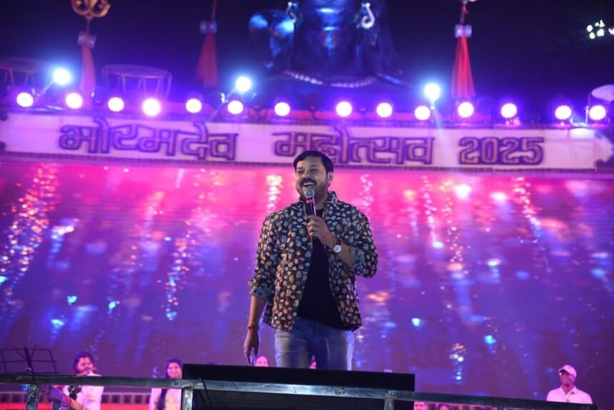 कवर्धा :- कबीरधाम जिला के ग्राम चौरा में आयोजित भोरमदेव महोत्सव के समापन दिवस पर छत्तीसगढ़ी फिल्म इंडस्ट्री के सुपरस्टार और पद्मश्री से सम्मानित अनुज शर्मा जी (विधायक धरसींवा) की शानदार संगीत एवं भजनों की प्रस्तुति देखने को मिली। उनकी सुरीली आवाज़ और संगीतमय अंदाज़ ने पूरे कबीरधाम जिला को मंत्रमुग्ध कर दिया। शर्मा के आरुग हे कलशा दाई गीत मे झूम उठा भोरमदेव|