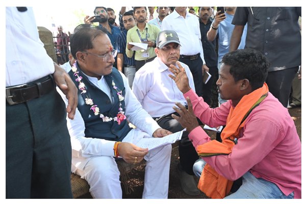 रायपुर 06 मई 2025/ मुख्यमंत्री विष्णु देव साय आज सुशासन तिहार के तहत औचक निरीक्षण पर बेमेतरा जिले के ग्राम सहसपुर आये। इस दौरान वे सहसपुर ग्राम के उत्कृष्ट किसान रोहित साहू के केला और पपीता के हरियाले खेत भी पहुंचे। मुख्यमंत्री को साहू ने बताया कि वे पिछले 9 साल से केला और पपीता की खेती कर रहे हैं, जिससे वे लाखों का मुनाफा कमा रहे हैं और 15-20 लोगों को अपने खेत में रोजगार भी दे रहे हैं। मुख्यमंत्री ने कृषक साहू की सराहना करते हए कहा कि उनकी खेती सभी किसानों के लिए प्रेरणादायी है।