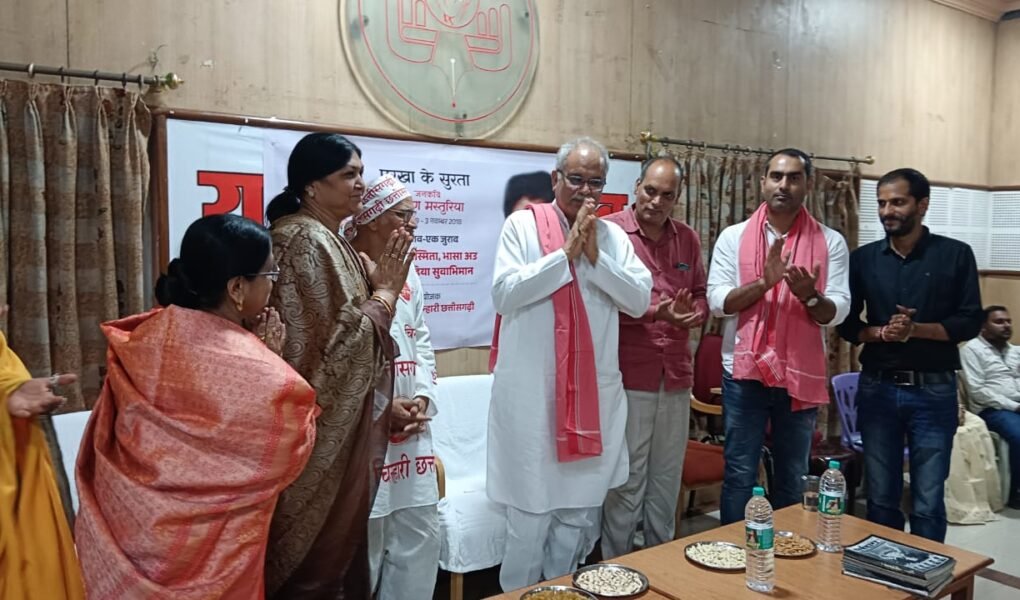 रायपुर। जनकवि स्व. लक्ष्मण मस्तुरिया की 76वीं जयंती के मौके पर रायपुर प्रेस क्लब में ‘पुरखा के सुरता’ एक भाव-एक जुराव कार्यक्रम का आयोजन किया गया. आयोजन में बतौर अतिथि खेल एवं युवा कल्याण मंत्री टंक राम वर्मा, पूर्व मुख्यमंत्री भूपेश बघेल, विधायक अनुज शर्मा, फिल्म निर्देशक सतीश जैन और मोर चिन्हारी छत्तीसगढ़ी मंच के संरक्षक नंदकिशोर शुक्ल विशेष रूप से मौजूद रहें. आयोजन में छत्तीसगढ़ी अस्मिता, भाषा और स्वाभिमान पर चर्चा हुई. मस्तुरिया जी के गीतों का गायन भी हुआ. मस्तुरिया जी के साथ बिताए यादों को भी साहित्यकारों, नेताओं और पत्रकारों ने साझा किया.