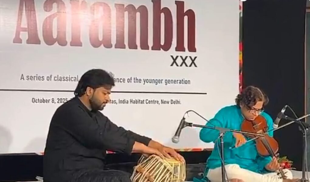 दिल्ली – गत 8 अक्टूबर को नई दिल्ली के इंडिया हेबिटेट सेंटर में रज़ा फाउंडेशन द्वारा आरंभ श्रृंखला आयोजित की गई जिसमें राजधानी के प्रसिद्ध वायलिन वादक साकेत साहू ने अपनी मनमोहक प्रस्तुति से दिल्लीवासियों का दिल जीत लिया, श्रोतागण वायलिन के स्वरों के साथ एकाकार होकर मंत्रमुग्ध हो गए, साकेत ने राग पुरिया धनाश्री प्रस्तुत किया आपके साथ तबला पर दिल्ली के प्रसिद्ध तबला वादक जहीन खान ने बहुत ही बेहतरीन संगत की दर्शकदीर्घा में प्रसिद्ध साहित्यकार श्री अशोक वाजपेयी जी उपस्थित थे।
