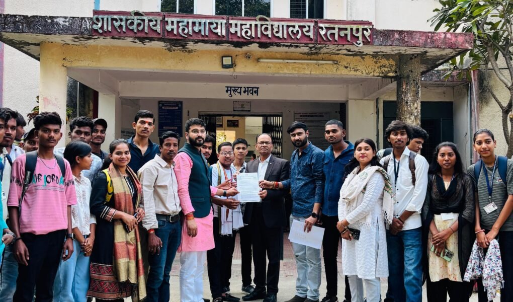 रतनपुर : एनएसयूआई के प्रदेश उपाध्यक्ष शशांक (लक्की) मिश्रा एवं प्रदेश सचिव राजा रावत के नेतृत्व में रतनपुर स्थित महामाया कॉलेज के लाचार व्यवस्था से परेशान छात्रों के हितों को देखते हुए आज 10 सुत्रीय प्रमुख मांगो को लेकर रतनपुर एनएसयूआई के छात्र नेता मानस ताम्रकार,आदित्य साहू,माही राजपूत सहित सैकड़ो महाविद्यालय में अध्ययनरत छात्रों के साथ प्राचार्य को ज्ञापन सौंपा, विदित हो कि शासकीय महामाया महाविद्यालय रतनपुर आसपास छेत्र का बड़ा महाविद्यालय है जिसमे दूर दूर से छात्र-छात्राए अध्ययन हेतु आते है जिन्हे कई सारी समस्याओं का सामना करना पड़ता है जिसके निराकरण हेतु आज ज्ञापन सौपा गया, जिसमे प्रमुख मांगे –